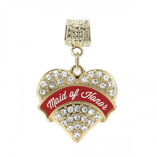 Gold Crimson Red Maid of Honor Pave Heart Memory Charm