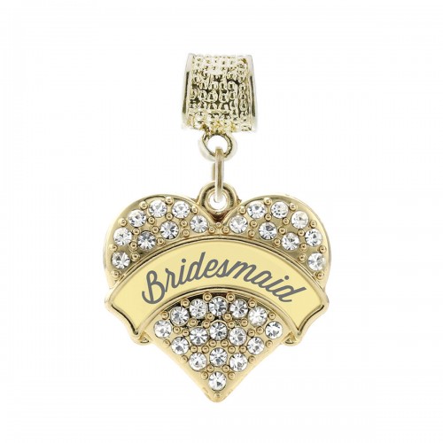 Gold Cream Bridesmaid Pave Heart Memory Charm
