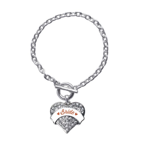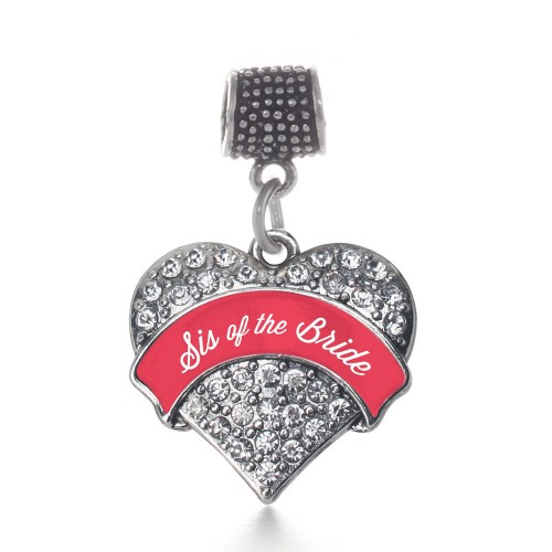 Silver Red Sis of the Bride Pave Heart Charm Toggle Bracelet