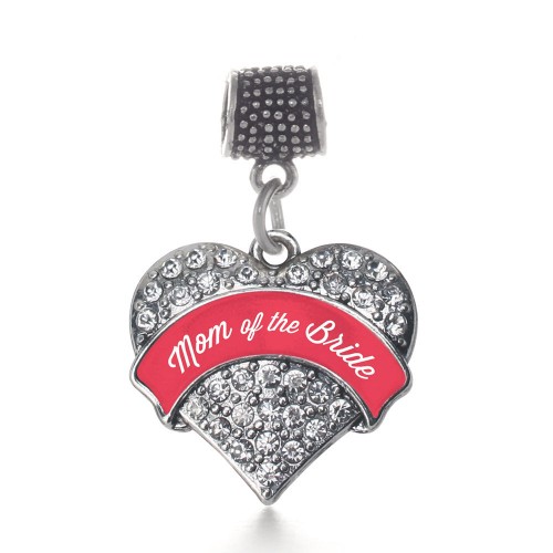 Silver Red Mom of the Bride Pave Heart Charm Toggle Bracelet