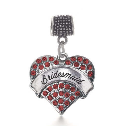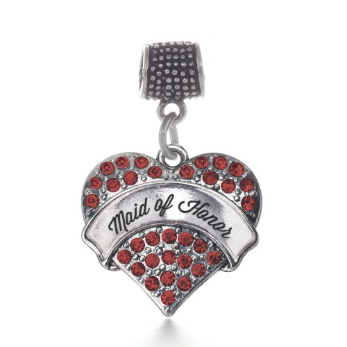 Silver Red Maid of Honor Red Pave Heart Charm Braided Bracelet
