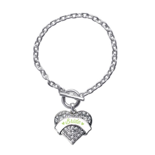 Silver Sage Green Bridesmaid Pave Heart Charm Toggle Bracelet