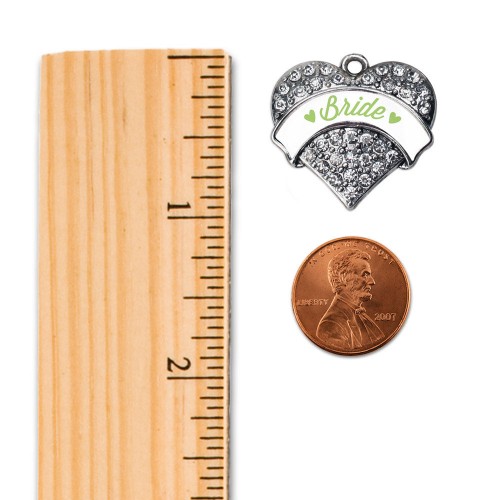 Silver Sage Green Maid of Honor Pave Heart Charm Toggle Bracelet