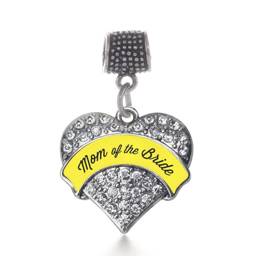 Silver Yellow Mom of the Bride Pave Heart Charm Toggle Bracelet