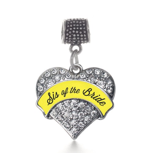 Silver Yellow Sis of the Bride Pave Heart Charm Toggle Bracelet