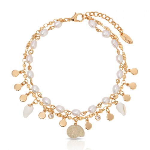 Layered Beach Treasures Anklet Pearl with 18k Gold Plating One Size