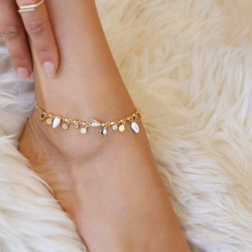 Layered Beach Treasures Anklet Pearl with 18k Gold Plating One Size