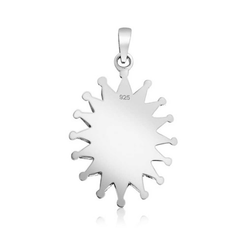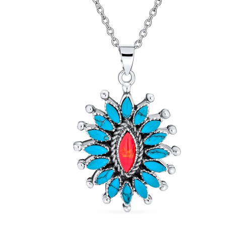 Southwestern Style Orange Red Blue Natural Turquoise Flower Blossom Necklace Pendant Sterling Silver