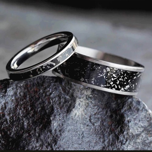Black Stardust™ Wedding Band Set, His And Hers Meteorite Rings