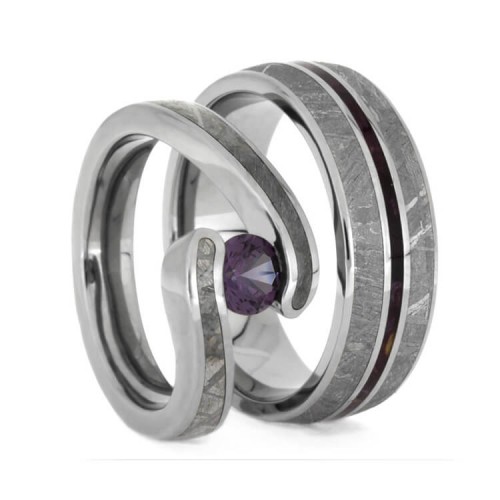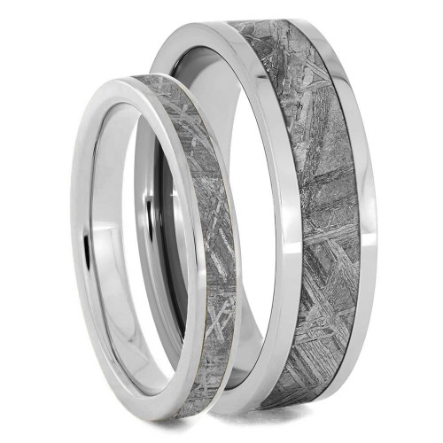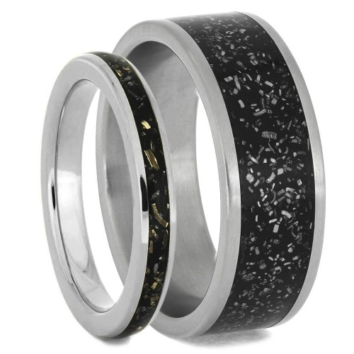 Black Stardust™ Wedding Band Set, His And Hers Meteorite Rings