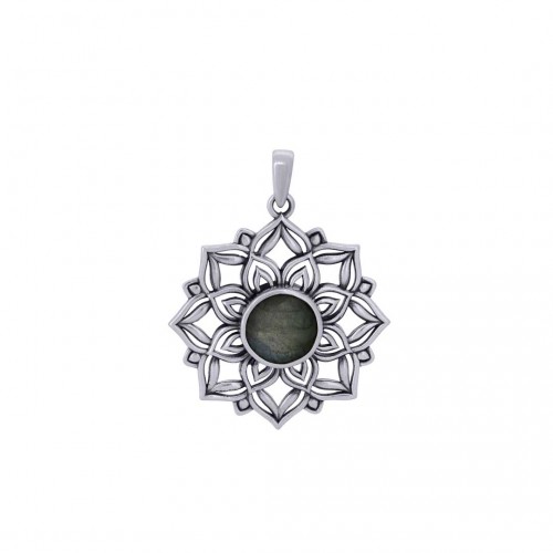Lotus Mandala Pendant with Labradorite Gemstone – Sacred Symbol of Intuition and Light
