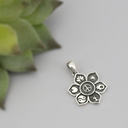 Sacred Intention Symbol Pendant – Sterling Silver Flower with Peace, Yin Yang, Hamsa & More