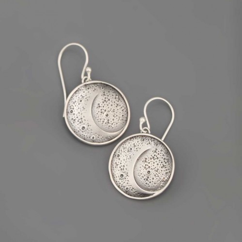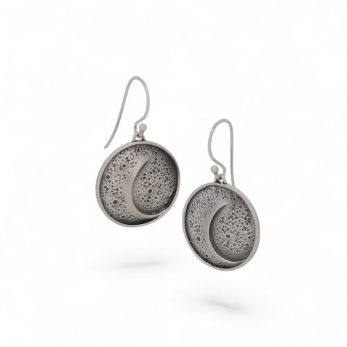 Sterling Silver Artistic Moon Earrings – Textured Celestial Disc Design