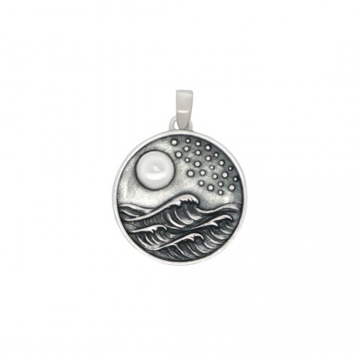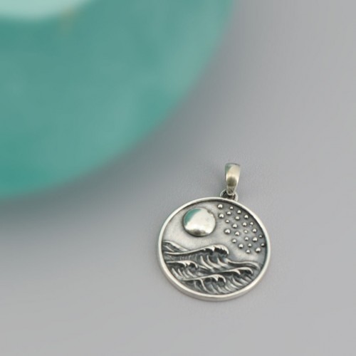 Sterling Silver Full Moon and Waves Pendant – Ocean-Inspired Pendant
