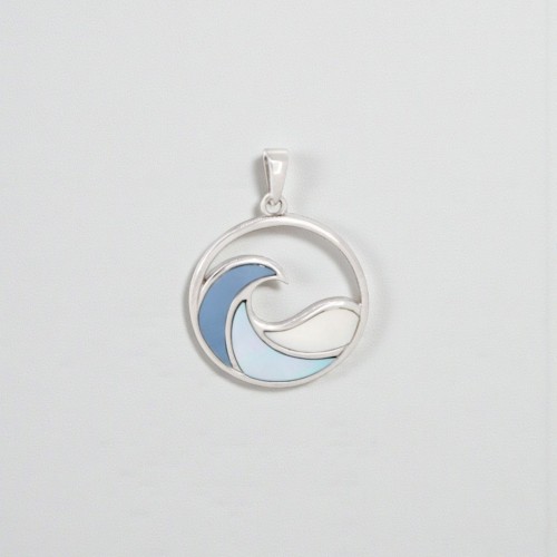 Sterling Silver Ocean Wave Pendant – Three-Tone Mother of Pearl Inlay, Rhodium-Plated