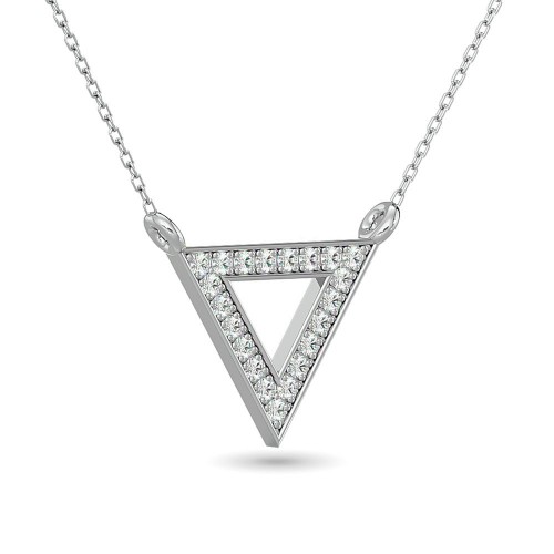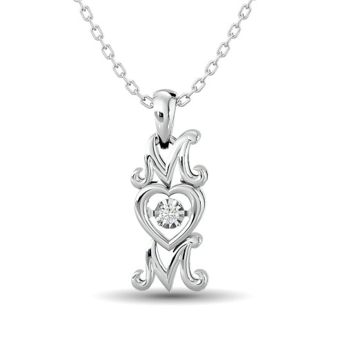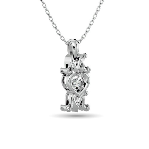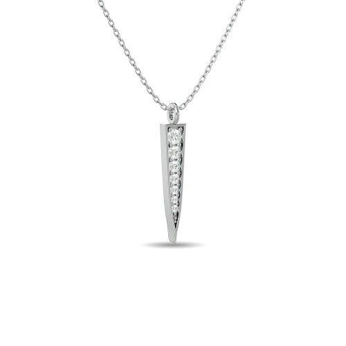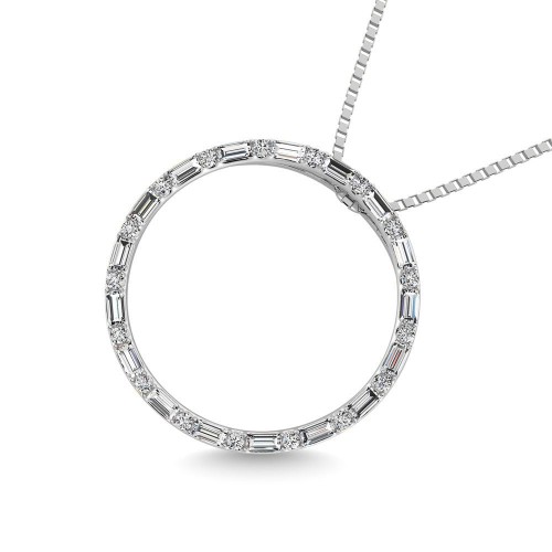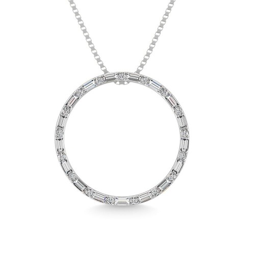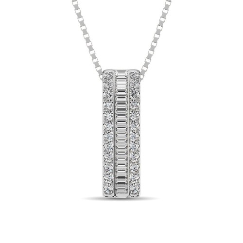 14K White Gold Round And Baguette Diamond 1/3 CT.TW. Drop Bar Pendant