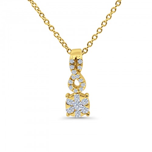 14K Yellow Gold 0.19ct Infinity Round Shape Diamond Drop Pendant Chain Necklace 18″ Long