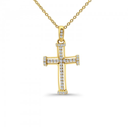 14K Yellow Gold 0.22ct Round Shape Diamond Pendant Chain Necklace 18″ Long