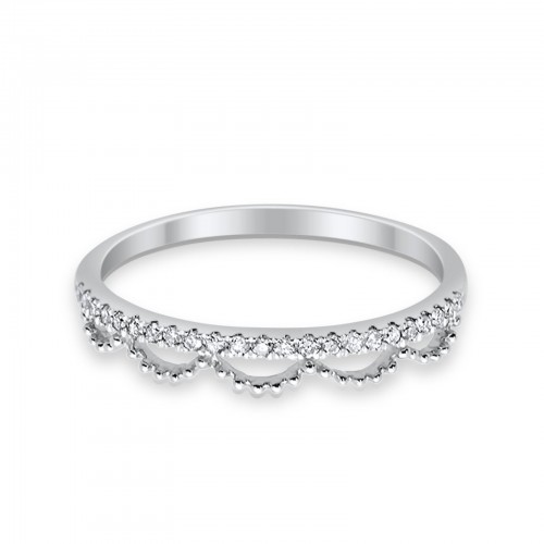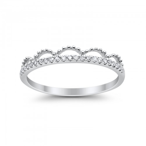 14K .11ct White Gold Diamond Eternity Bands Trendy Crown Stackable Size 6.5