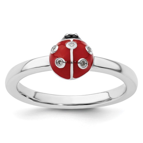 Shop Stylish Sterling Silver Ladybug Ring – Stackable with Enamel & Diamond Accent 6