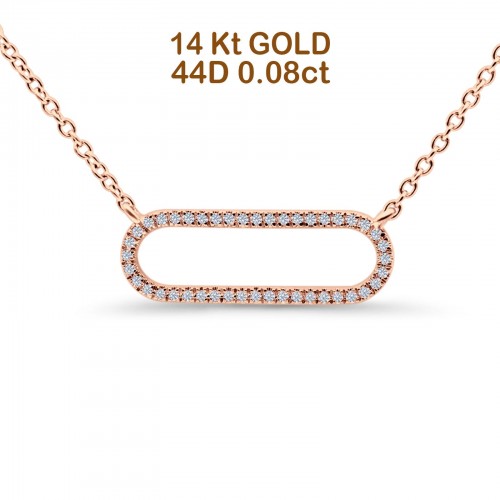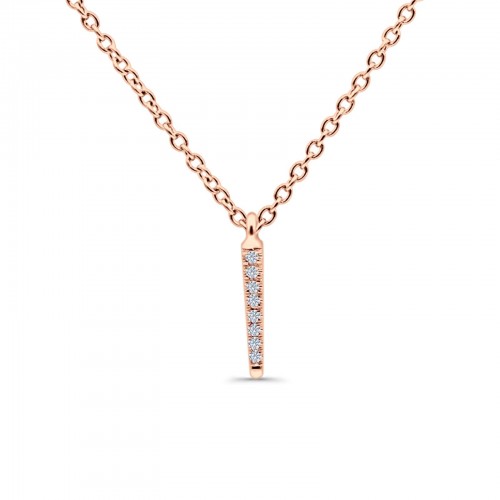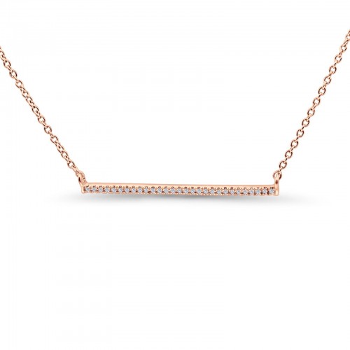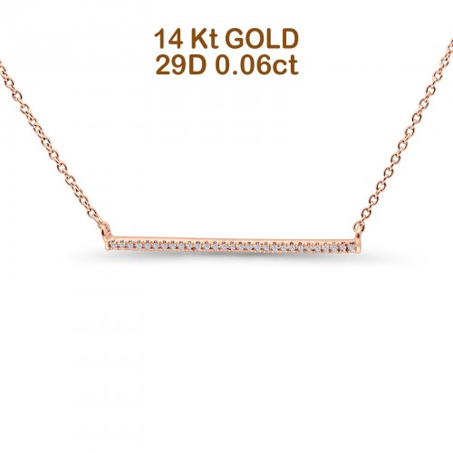 14K Rose Gold 0.06ct Round Shape Diamond Line Bar Pendant Chain Necklace 18″ Long
