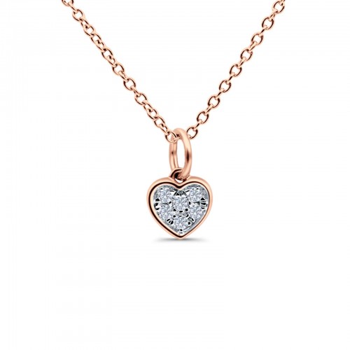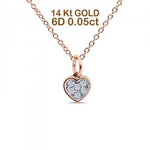 14K Rose Gold 0.05ct Round Shape Diamond Heart Pendant Chain Necklace 18 inch Long