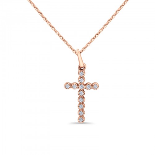 14K Rose Gold 0.02ct Round Shape Trendy Diamond Vertical Drop Pendant Chain Necklace 18″ Long