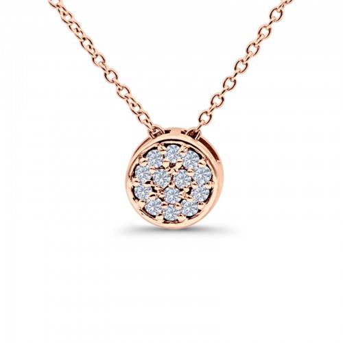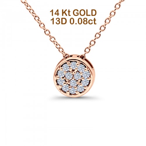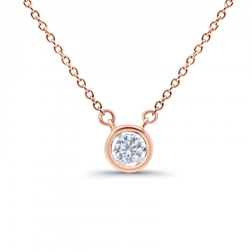 14K Rose Gold 0.10ct Round Shape Diamond Bezel Solitaire Pendant Chain Necklace 18″ Long