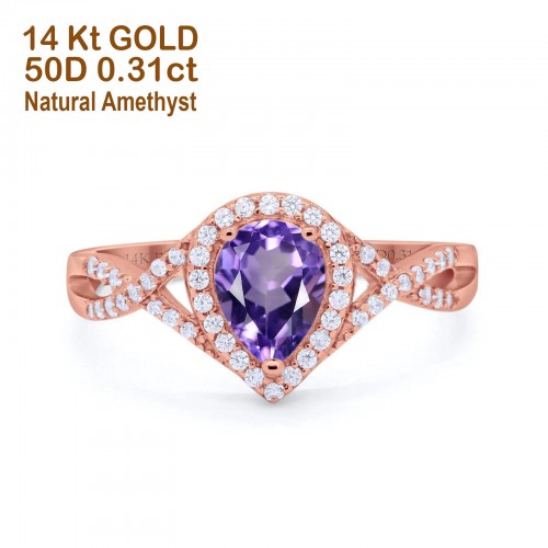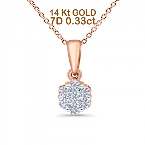 14K Rose Gold 0.33ct Round Shape Diamond Solitaire Pendant Chain Necklace 18″ Long
