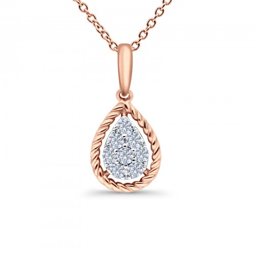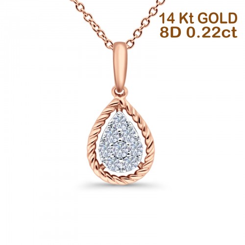 14K Rose Gold 0.22ct Round Shape Diamond Pendant Chain Necklace 18 Inch Long