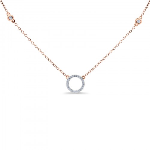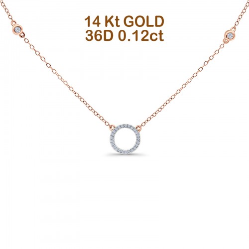 14K Rose Gold 0.12ct Round Shape Diamond Trendy Circle Pendant Chain Necklace 18″ Long