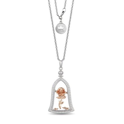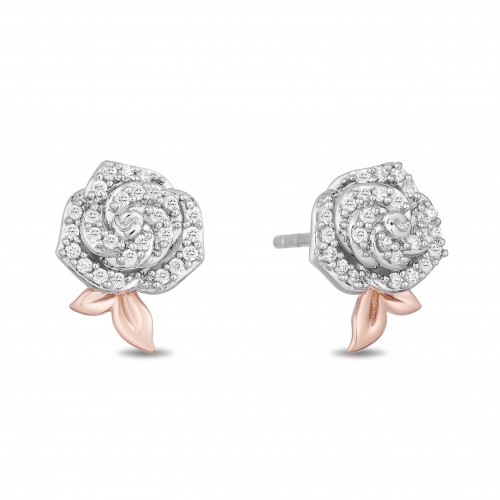 Enchanted Disney Fine Jewelry Sterling Silver and 10K Rose Gold with 1/5 CTTW Diamond Belle Earrings