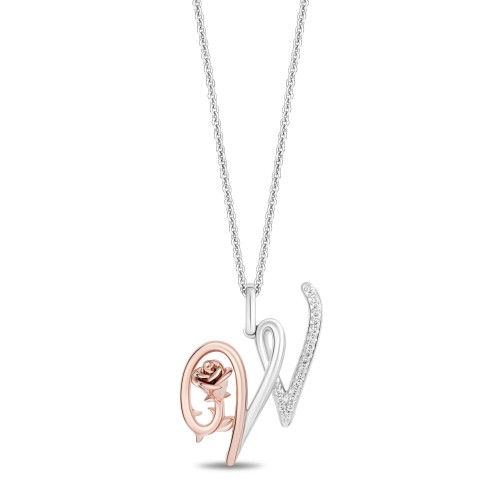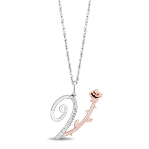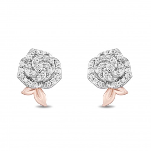 Enchanted Disney Fine Jewelry Sterling Silver and 10K Rose Gold with 1/5 CTTW Diamond Belle Earrings
