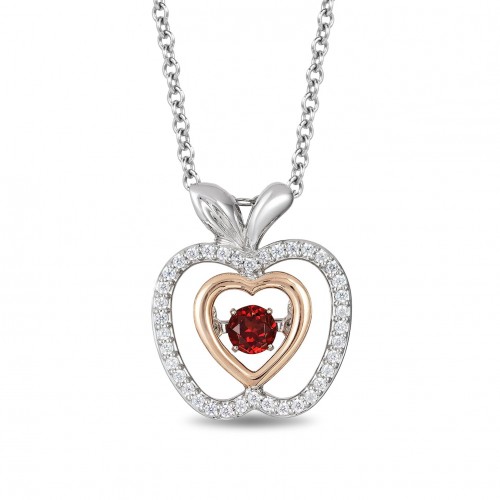 Enchanted Disney Fine Jewelry Sterling Silver 1/10 CTTW Snow White Apple Pendant Necklace