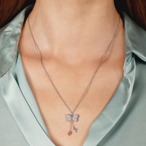 Enchanted Disney Fine Jewelry Sterling Silver and 10K Rose Gold 1/4 CTTW Snow White Necklace