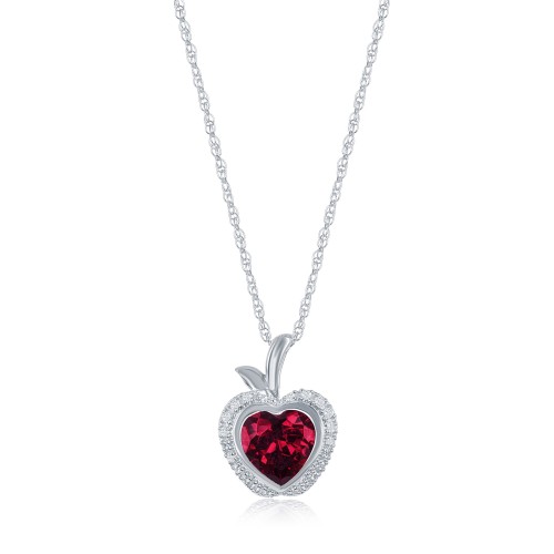 Enchanted Disney Fine Jewelry Sterling Silver 1/10 CTTW Snow White Apple Pendant Necklace