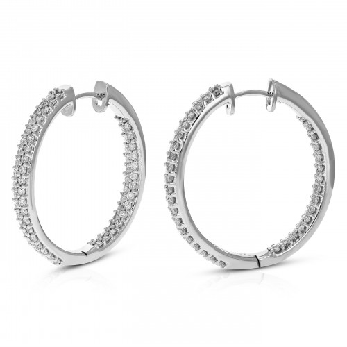 1 cttw Double Row Lab Grown Diamond Hoop Earring 14K White Gold
