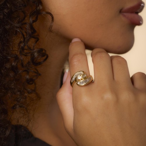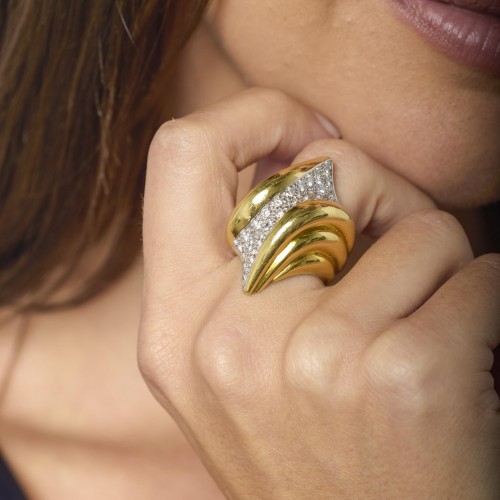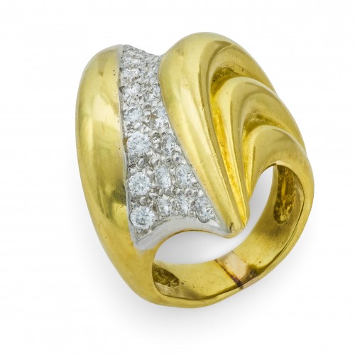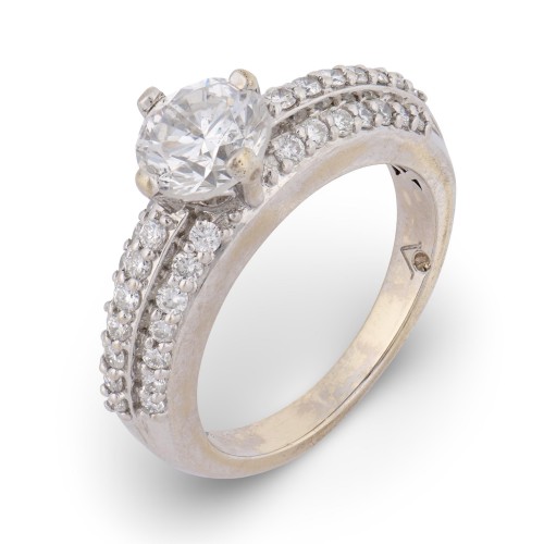 Vintage diamond 18k white gold mosaic diamond engagement ring
