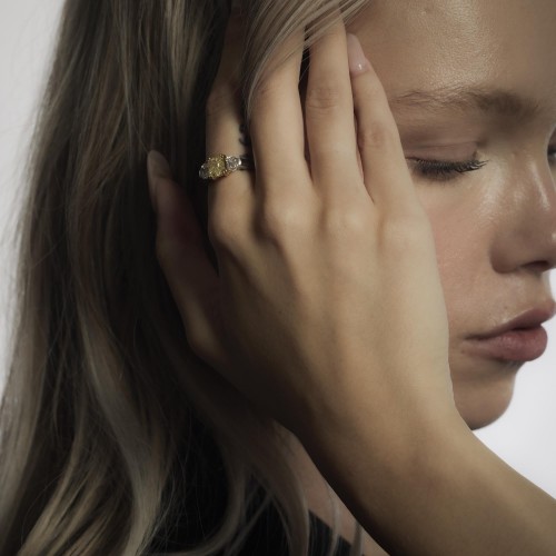 Vintage GIA 1.54 fancy intense yellow diamond platinum 3 stone ring