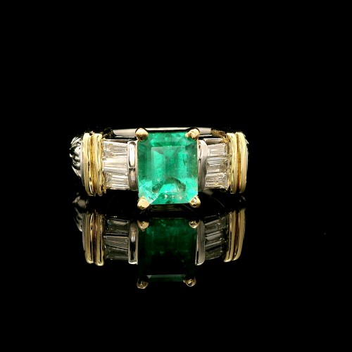 1.40ct. Emerald & Diamond Vintage Engagement – Fashion Ring Platinum 18K Yellow Gold – J39907C