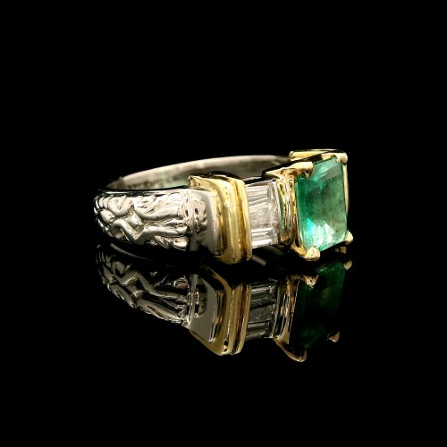 1.40ct. Emerald & Diamond Vintage Engagement – Fashion Ring Platinum 18K Yellow Gold – J39907C