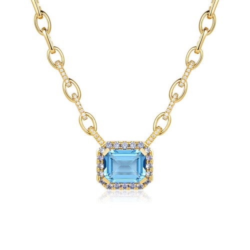 “Aqua Earth Conservation Champion” Aquamarine and Sapphire Necklace 18K Yellow Gold Vermeil 18″
