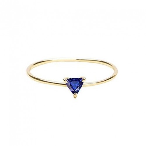0.50 Carats Solitaire Trillion Sapphire Ring Yellow Gold Jewelry