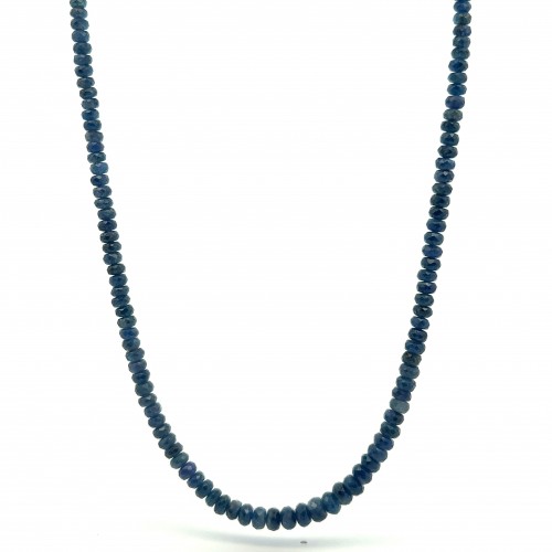 Natural Blue Sapphire Plain Rondelle Beads Gemstone Necklace
