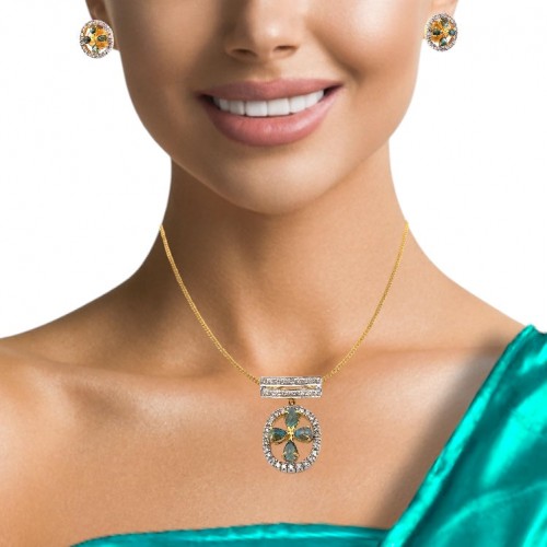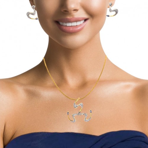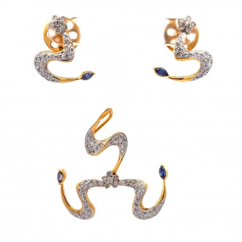18K Two Tone Gold Pendant Earring Set with Natural Diamond & Blue Sapphire Jewellery