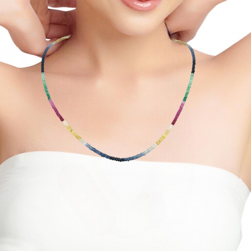 Natural Emerald Ruby Blue & Yellow Sapphire Multi Precious Necklace Jewelry