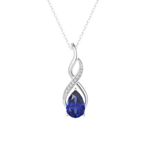1.56 CT. Blue Sapphire and White Sapphire Infinity Swirl Pendant White Gold Plated Silver 16″+1″+1″