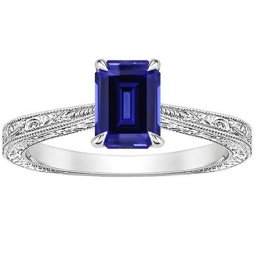 Yellow & White Gold Emerald Cut Blue Sapphire Natural Earth Mined Diamond Ring 6.75 Carats