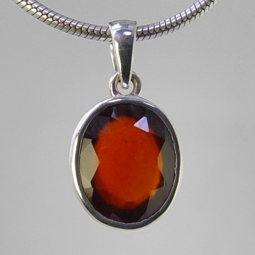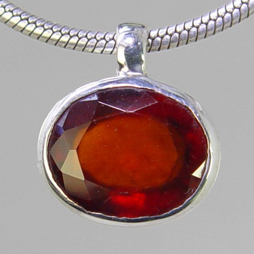Hessonite Garnet 7.8 ct Faceted Oval Bezel Set Sterling Silver Pendant