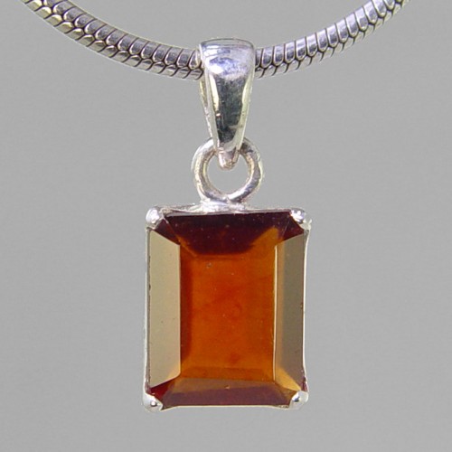 Hessonite Garnet 6.9 ct Faceted Emerald Cut Sterling Silver Pendant